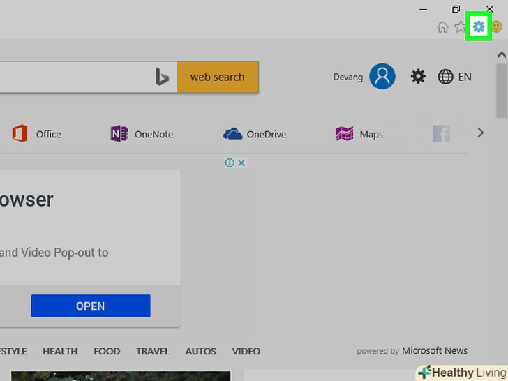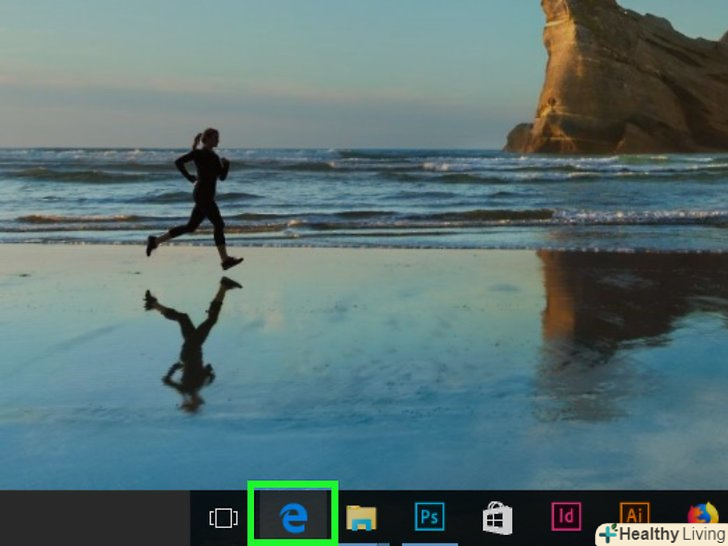 Запустіть Edge. натисніть на значок у вигляді синьої літери «e» або білої літери «e» на синьому тлі.