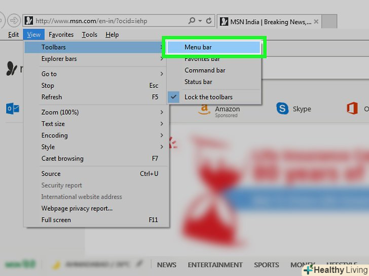 Відобразіть попередньо встановлені панелі інструментів. якщо включення додаткової панелі не вирішило проблему, вам, швидше за все, доведеться відобразити встановлені панелі інструментів. Для цього:- Натисніть «Вид» (у Windows спочатку натисніть клавішуAlt );
