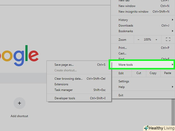 ВиберітьДодаткові інструменти . ця опція знаходиться посередині меню. Відкриється нове меню.
