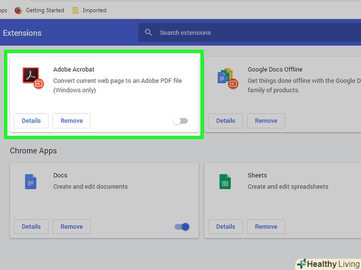 Увімкніть панель інструментів. встановіть прапорець у «включити» праворуч від панелі інструментів, а потім встановіть прапорець у «дозволити в режимі інкогніто» під панеллю інструментів, якщо хочете використовувати панель інструментів в режимі інкогніто.
