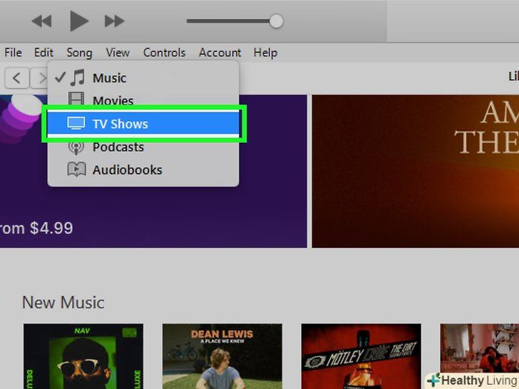 Клацніть поТелешоу . ця опція знаходиться в меню «музика». Відобразиться список фільмів і телешоу.