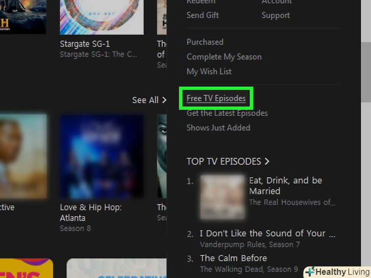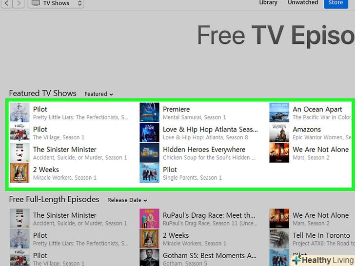 НатиснітьБезкоштовні випуски телешоу . це сіра посилання в правій частині сторінки iTunes. Відкриється список телешоу з безкоштовними випусками.