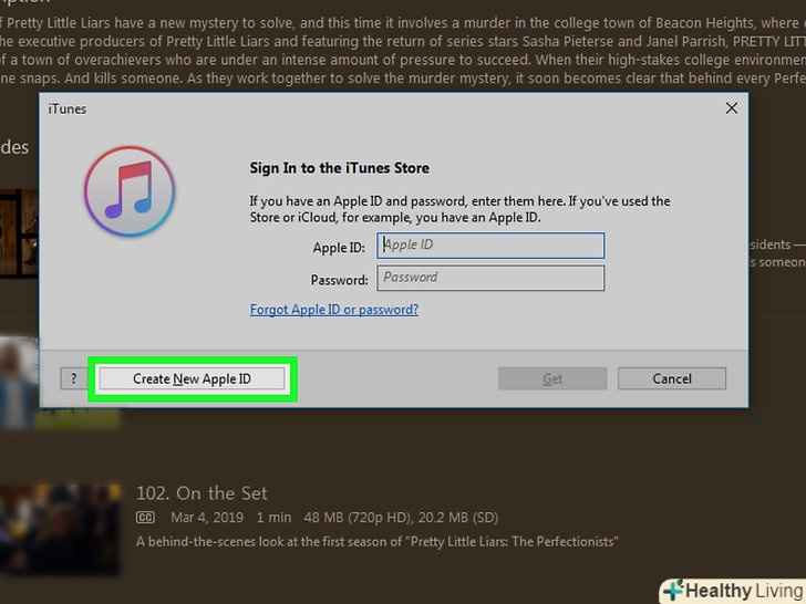 Клацніть поСтворити новий Apple ID . ви знайдете цю опцію в нижньому лівому кутку спливаючого вікна.