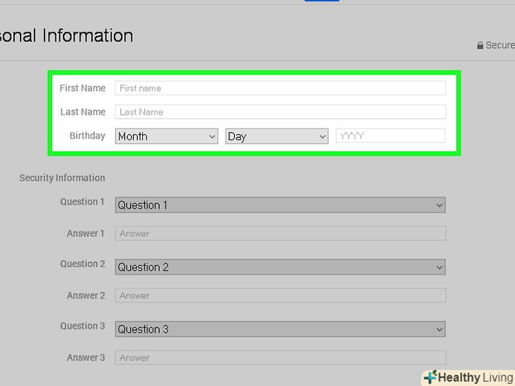 Виберіть контрольні питання. відкрийте меню «контрольне запитання», виберіть у ньому запитання, а потім введіть відповідь у текстовому полі «відповідь».- Повторіть ці дії з двома залишилися контрольними питаннями.