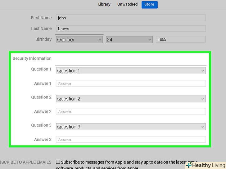 Виберіть контрольні питання. торкніться поля «питання«, натисніть на питання, яке ви хочете використовувати, а потім натисніть» відповідь " і введіть свою відповідь.- Це потрібно зробити для всіх трьох контрольних питань.