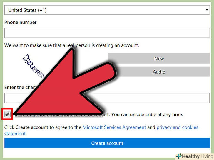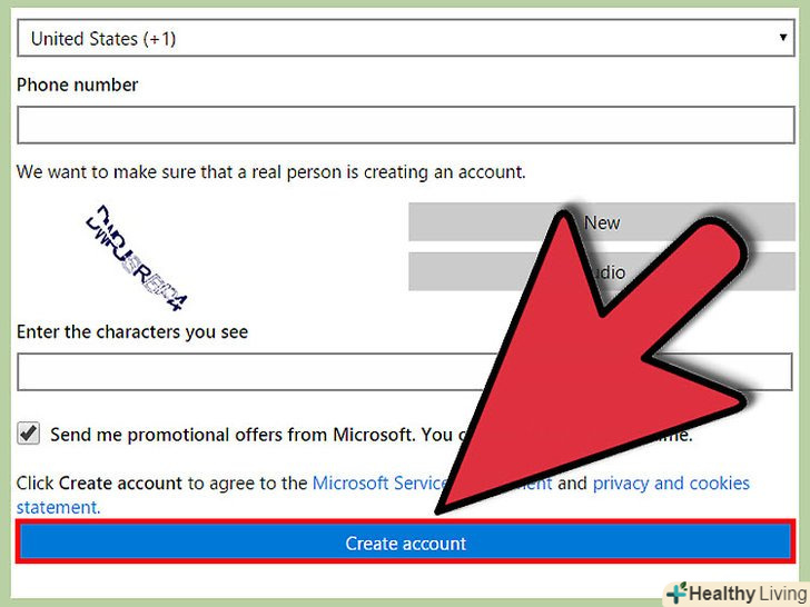 Натисніть "Створити обліковий запис". натисканням цієї кнопки, ви приймаєте угоду про використання служб Майкрософт.