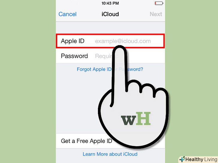 Зайдіть в "Налаштування" вашого пристрою компанії Apple. виберіть в меню iCloud, і навпроти значка "пошта" натисніть включити. Після чого, з'явиться повідомлення з пропозицією створити безкоштовний адресу e-mail, щоб включити пошту iCloud.- Щоб створити пошту iCloud, вам буде потрібно універсальний ідентифікатор Apple ID. [4]