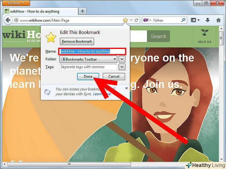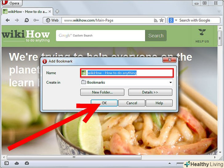 Назвіть закладку.потім виберіть папку зі спадного меню. Ви також можете додати Нік і опис закладки (якщо хочете). Потім натисніть ОК.