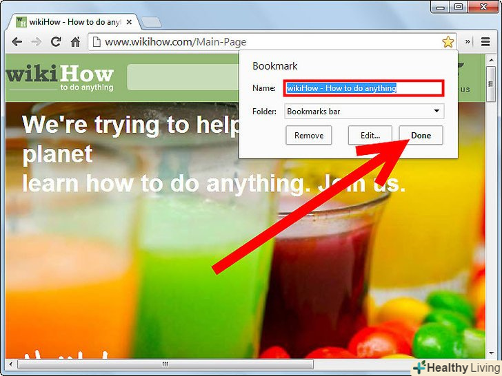 Назвіть закладку.потім виберіть папку зі спадного меню. Потім натисніть "Готово".