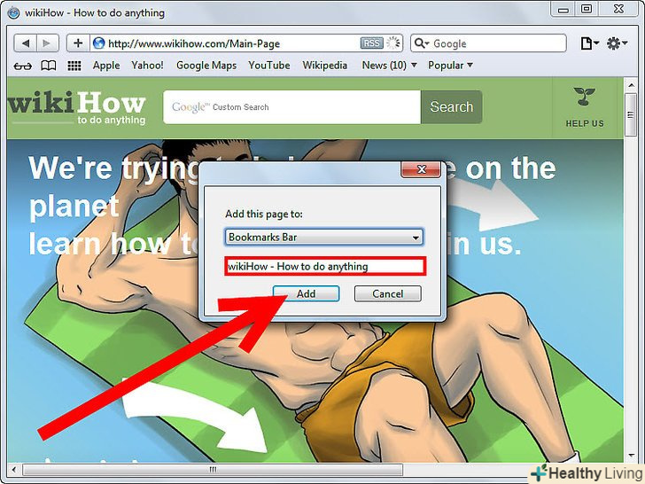 Назвіть закладку.потім виберіть папку зі спадного меню. Потім натисніть "Додати".