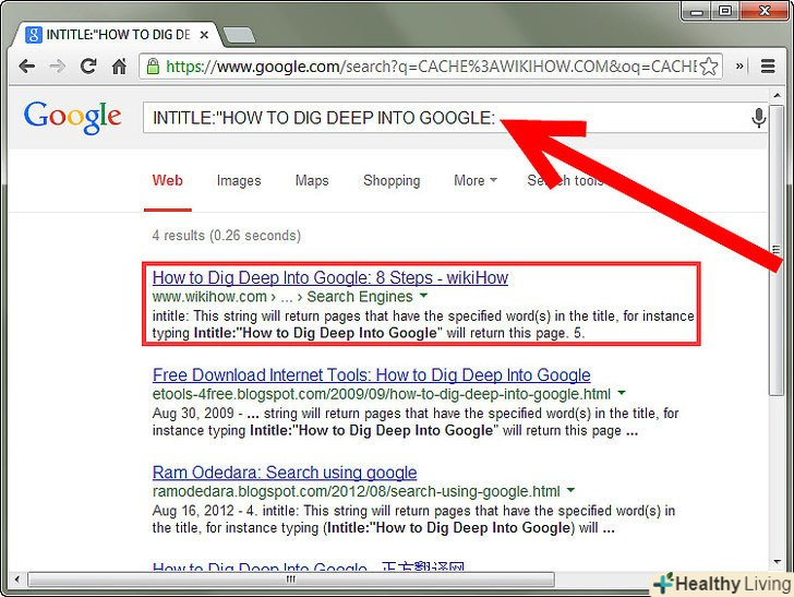 ОператорCache: якщо шукана сторінка більше не існує, цей оператор відобразить стару версію сторінки. Приклад: cache:wikihow.com