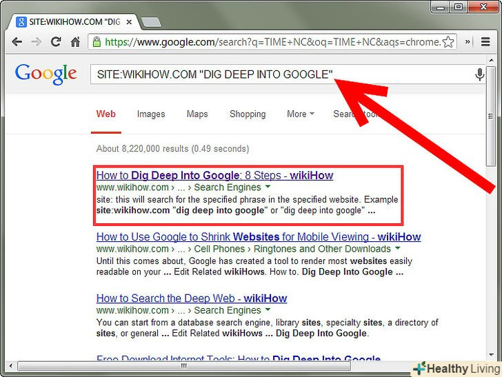 ОператорSite: цей оператор виконає пошук певної фрази на зазначеному Сайті. Приклад: site:wikihow.com "дізнатися більше інформації в google" або "дізнатися більше інформації в google" site:wikihow.com повернуть вас на цю сторінку.