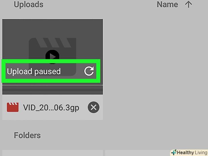 Натисніть на файл, виділений сірим кольором з написомЗавантаження призупинено . завантаження автоматично відновиться з того місця, на якому вона була припинена.