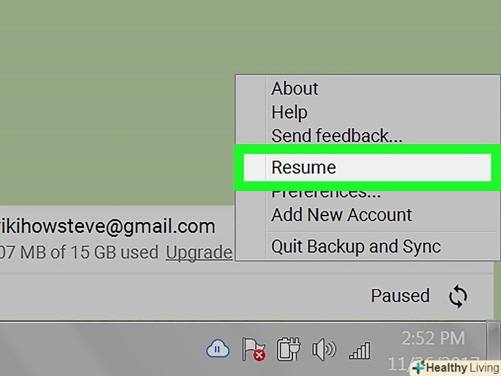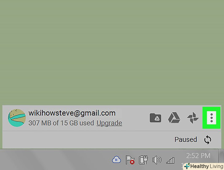 Натисніть на іконку «Резервне копіювання і синхронізація». це іконка у вигляді хмари зі стрілою всередині. Якщо ваш комп'ютер працює під управлінням Windows, вона розташовується в нижньому правому куті екрану на панелі завдань. Якщо ваш комп'ютер працює під управлінням Mac, тоді ви знайдете її в рядку меню в правому верхньому куті екрану.