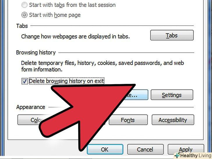 Подивіться на нове вікно.у ньому має бути вкладка "Загальні", яка відноситься до історії перегляду Інтернету. Натисніть на " Видалити ...".