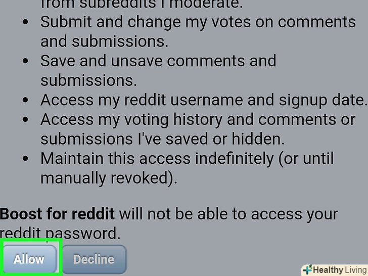 Прокрутіть вниз і натиснітьAllow (дозволити). так ви надасте додатку доступ до своєї стрічки Reddit.