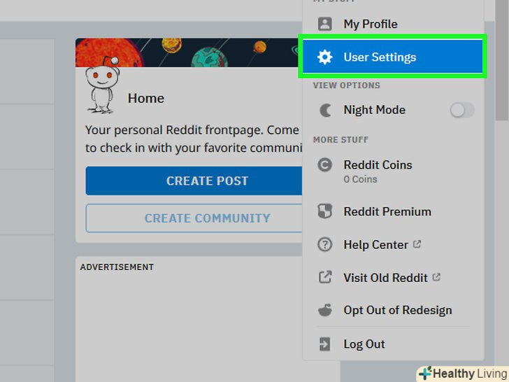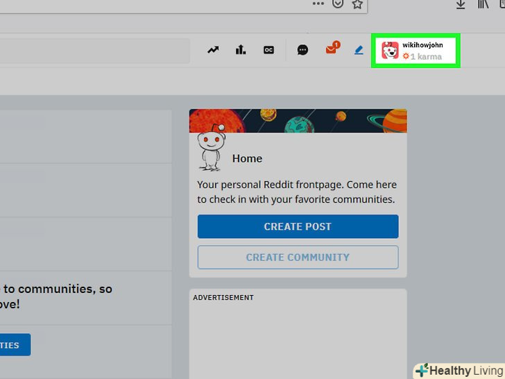 Натисніть на своє Ім'я користувача Reddit. воно знаходиться в правому верхньому куті сторінки. Розкриється меню.