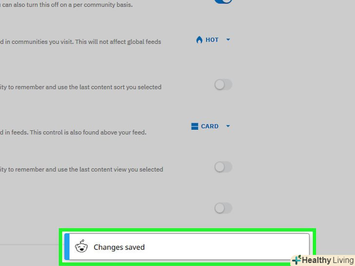 Клацніть поSAVE (Зберегти). ця синя кнопка знаходиться внизу сторінки. Внесені зміни будуть збережені. Відтепер небажаний контент буде відображатися у вашій стрічці.- Щоб внесені зміни вступили в силу на Android-пристрої або iPhone/iPad, перезапустіть мобільний додаток Reddit. [3]