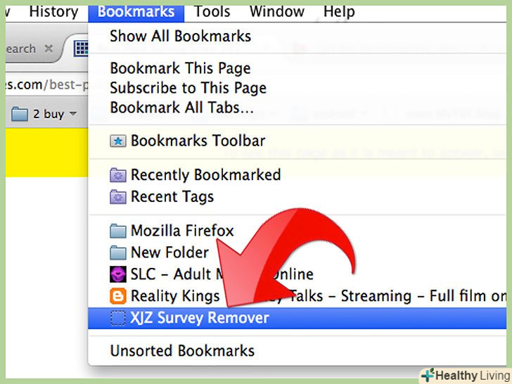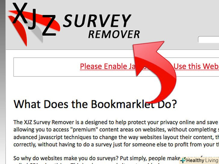 Встановіть букмарклет XJZ Survey Remover. це посилання, яке ви можете розмістити у себе на панелі закладок. Коли ви заходите на сайт з опитуванням, ви можете клацнути на цю закладку, щоб спробувати видалити опитування.- Ви можете завантажити букмарклет XJZ з сайту розробників. Цей букмарклет доступний абсолютно безкоштовно. Просто перетягніть посилання на панель закладок, щоб створити нову закладку.