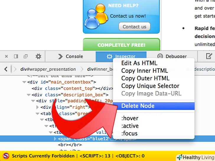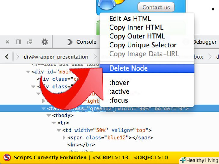 Клацніть правою кнопкою миші на елементах, які хочете відключити. Вам потрібно клацнути правою кнопкою миші на елементі в коді, а не на сторінці сайту. Виберіть "відключити елемент "або" видалити елемент", щоб видалити об'єкт з сайту.
