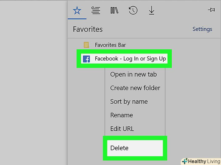 Клацніть правою кнопкою миші (або натисніть пальцем і утримуйте) по закладці і в меню виберіть "Видалити". це призведе до негайного видалення закладки. Видалення папки призведе до видалення всіх закладок, які знаходяться в ній.- Видалити папку «Вибране» не можна.