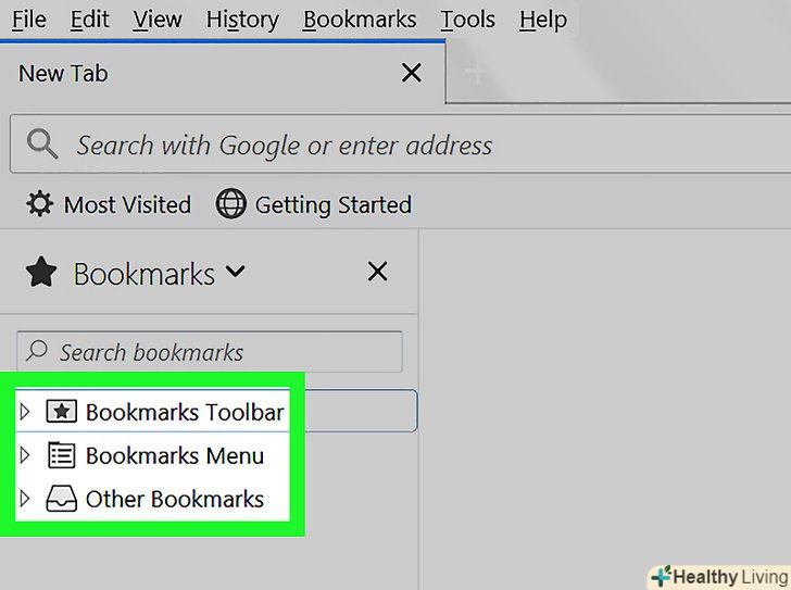 Відкрийте диспетчер закладок, щоб переглянути їх. Закладки можна переглядати за допомогою диспетчера закладок, що дозволить відкривати і закривати папки з закладками.- Натисніть "Вибране" gt;»упорядкувати вибране". Якщо меню «Вибране» не відображається на екрані, натиснітьAlt .