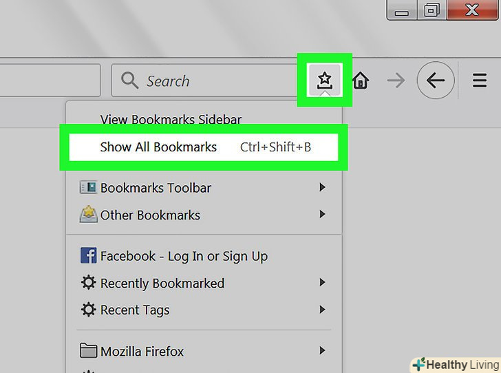 Відкрийте бібліотеку, щоб керувати закладками. якщо потрібно позбутися від великої кількості закладок, бібліотека спростить їх пошук і видалення.- Клацніть по значку буфера обміну і в меню виберіть "Показати всі закладки" або натисніть⌘ Command / Ctrl + ⇧ Shift + B .
