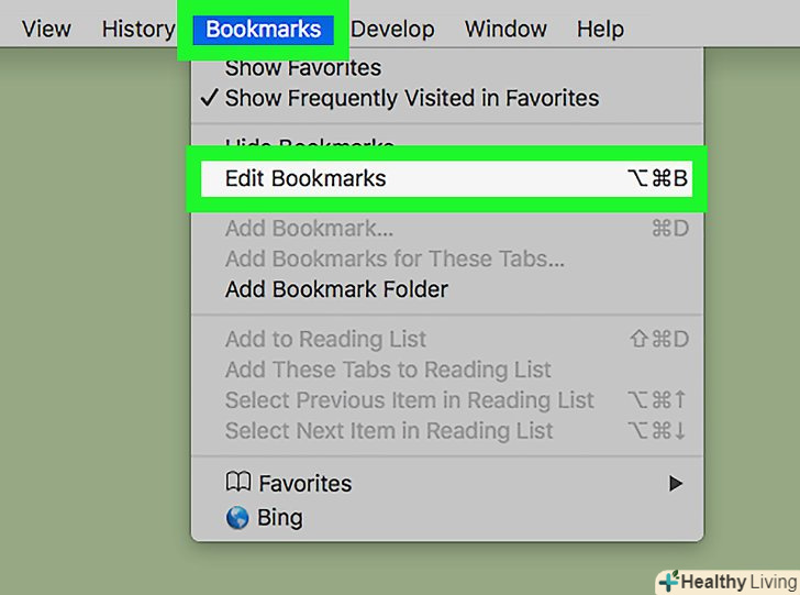 Відкрийте меню «Закладки» і виберіть «редагувати закладки». відкриється диспетчер закладок.- Також можна натиснути⌘ Command + ⌥ Option + B .