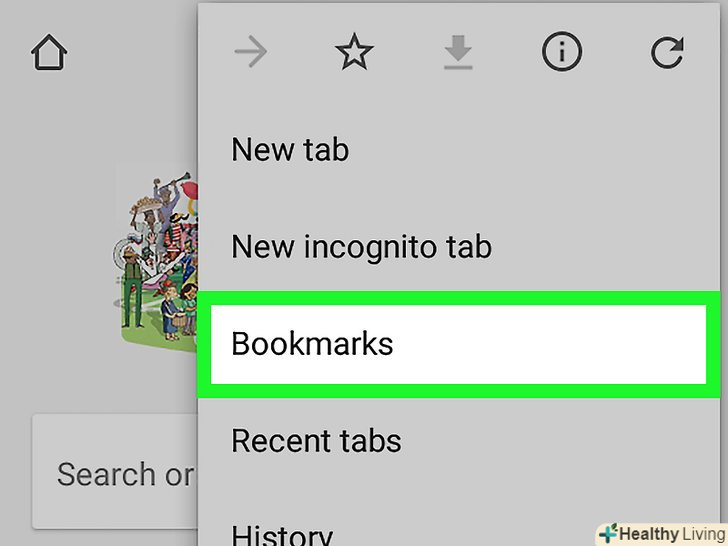 Клацніть по значку меню Chrome» ( ⋮ ) і виберіть «Закладки». відкриється список закладок. Якщо ви не бачите значок ⋮, прокрутіть сторінку.- Якщо ви ввійшли в обліковий запис Google, відобразяться всі синхронізовані закладки.