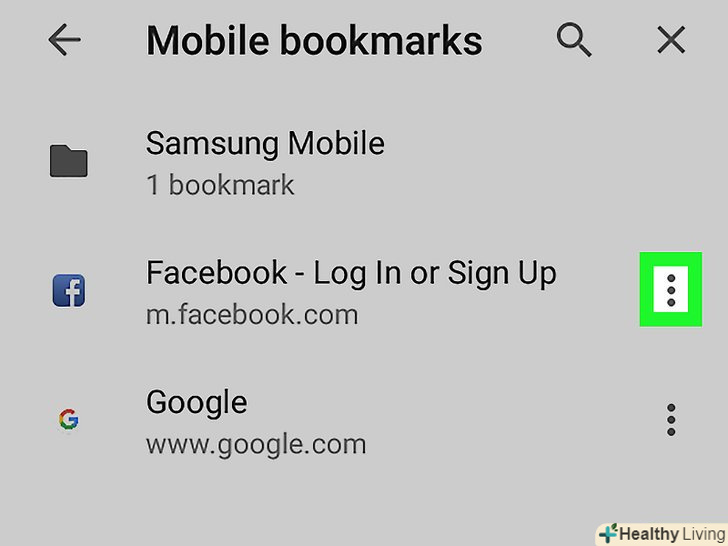 Клацніть по значку меню ( ⋮ ) поруч із закладкою, яку потрібно видалити. відкриється меню.