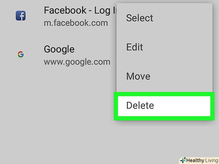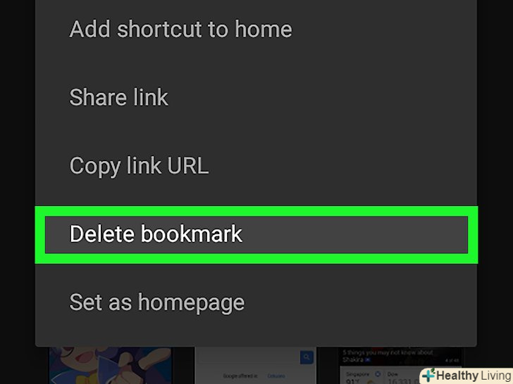 Натисніть і утримуйте закладку, яку потрібно видалити. відкриється меню.