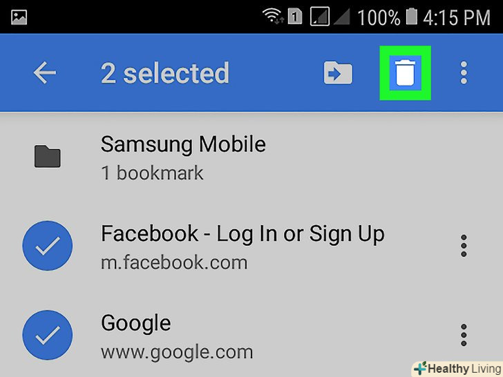 Видаліть виділені закладки, клацнувши по значку у вигляді сміттєвого кошика. так ви видалите всі виділені закладки.
