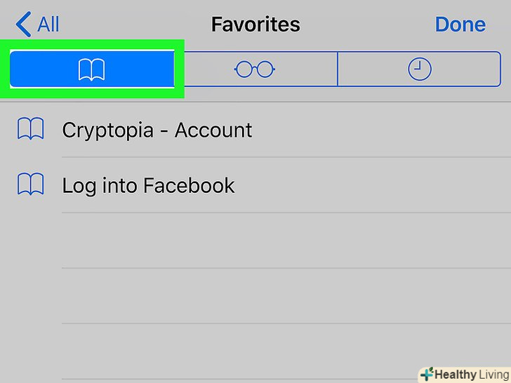 Натисніть "Закладки". ви знайдете цю опцію в нижній частині екрана (на iPhone) або в врехней частині екрану (на iPad).