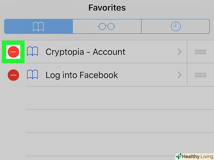 Натисніть " - " поруч із закладкою або папкою, яку потрібно видалити. натисніть "Видалити", щоб підтвердити своє рішення.- Не можна видалити папки "Вибране" і "історія", але можна позбутися від елементів всередині цих папок.
