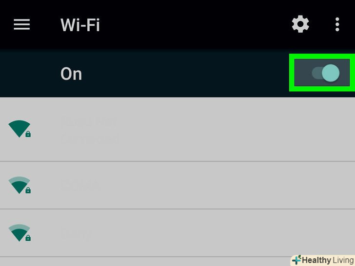 Перемістіть перемикач Wi-Fi в положення. Щоб використовувати Wi-Fi Direct, потрібно попередньо включити Wi-Fi на своєму пристрої.