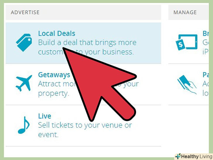 Просувається акція. це традиційний тип акцій, який зробив Groupon відомим. Так він працює:- Консультація. Робота з представником Groupon по створенню пропозиції, яка відповідає вашим бізнес інтересам.