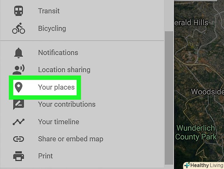 ВиберітьМої місця в третьому наборі опцій.у лівій частині карти відкриється нове вікно.