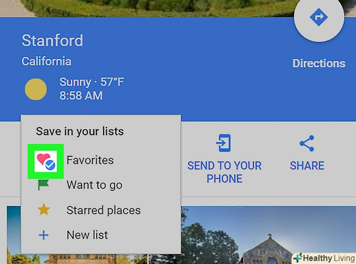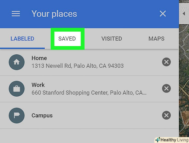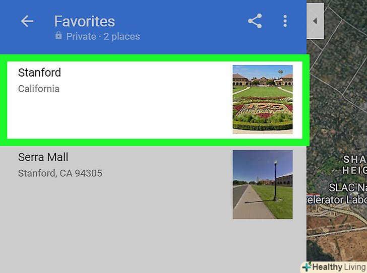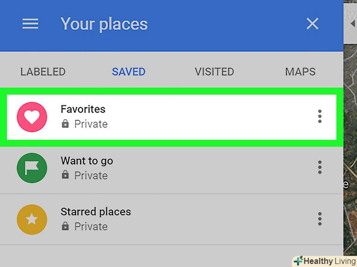 Виберіть категорію, під якою було збережено це місце. знайдіть збережене місце в одній з 3 категорій:» Вибране«,» Цікаві місця «або»відмічені місця".