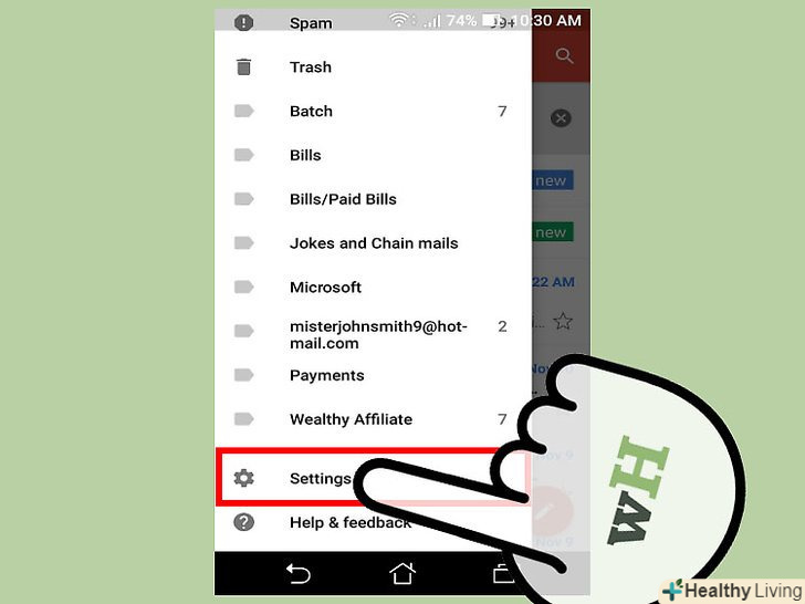 Натисніть "Налаштування". відкриються налаштування Програми Gmail.