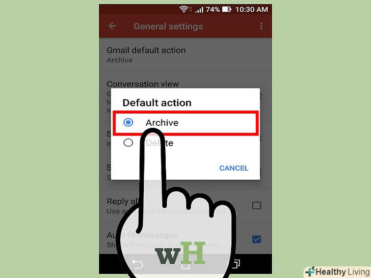 Торкніться опції "архівувати". тепер за замовчуванням листи будуть відправлятися в архів, а не видалятися.- У цьому меню можна також включити повідомлення про архівування / видалення листів.