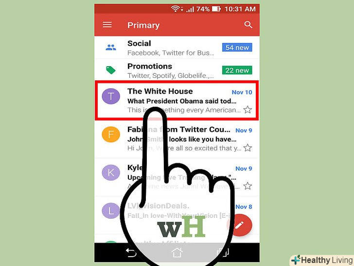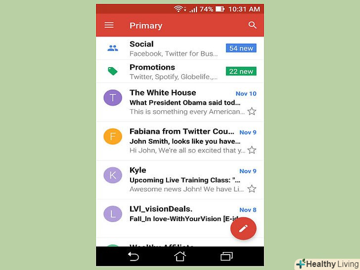 Запустіть програму Gmail. щоб архівувати листи на Android-пристрої, спочатку потрібно змінити налаштування так, щоб за замовчуванням листи архівувалися, а не віддалялися. [2]- Технічно окремі листи можна архівувати безпосередньо в поштовій скриньці, але це незручно, якщо необхідно заархівувати безліч листів.