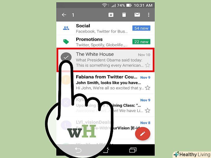 Виберіть листи, які хочете заархівувати. для цього встановіть прапорець зліва від кожного листа.- На мобільному пристрої Натисніть і утримуйте лист, щоб вибрати його. Тепер торкніться інших листів, щоб виділити їх.