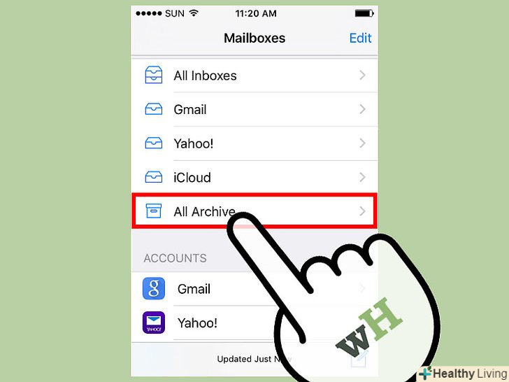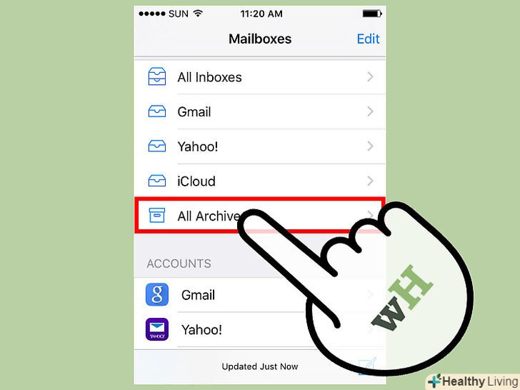 Відкрийте папку з заархівованими листами. залежно від того, які Поштові служби синхронізуються з поштовим додатком, ім'ям такої папки буде «архів», «Вся пошта» або інше.- Ця папка знаходиться в меню «поштові скриньки".