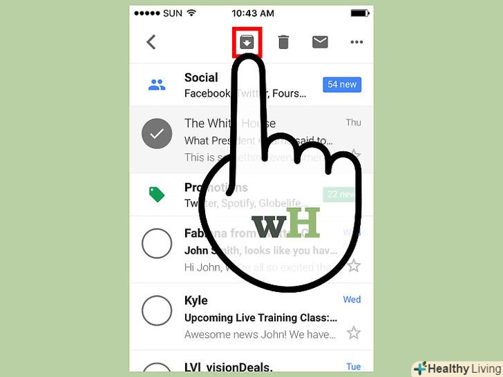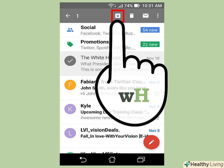 Натисніть "Архівувати". виділені листи будуть видалені з папки «Вхідні» і відправлені в архів.- Кнопка "архівувати" знаходиться вгорі екрану поруч зі значком кошика.