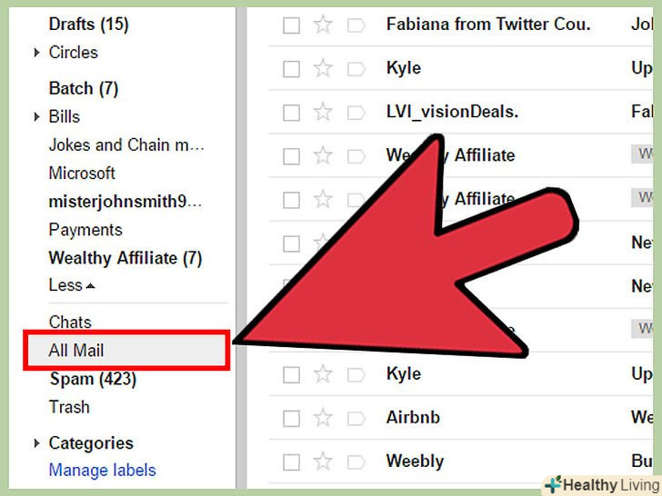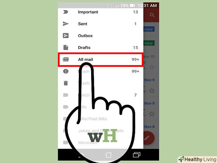 Відкрийте папку «вся пошта», в якій знаходяться заархівовані листи. для цього відкрийте меню Gmail; зверніть увагу, що, можливо, вам доведеться натиснути «ще», щоб відобразити папку «вся пошта».