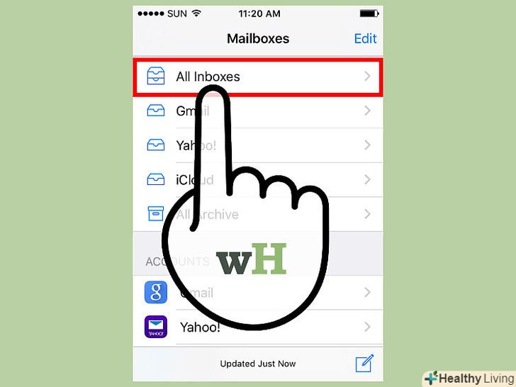Торкніться опції «усі вхідні». вона знаходиться у верхній частині меню «поштові скриньки".- Якщо в додатку «пошта» відкрилася якась папка, натисніть на значок у вигляді спрямованої вліво стрілки в лівому верхньому кутку екрану.