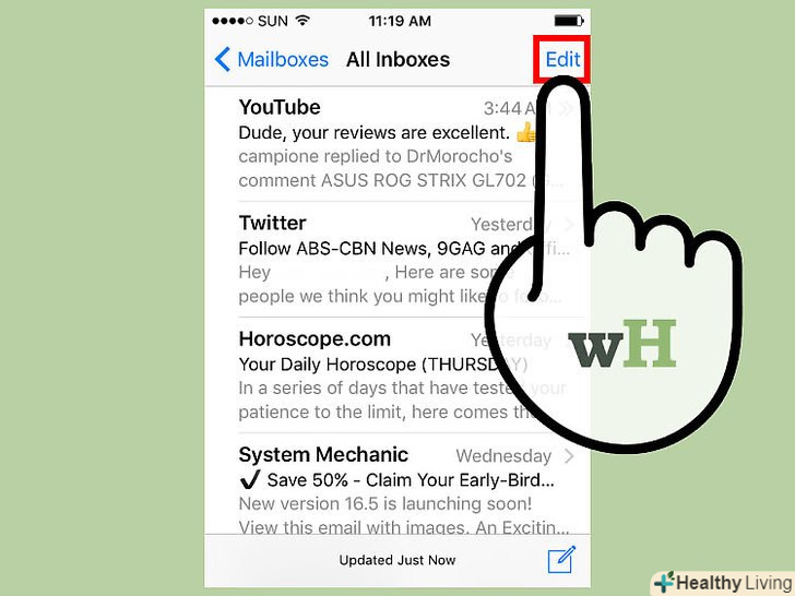 Торкніться опції «Змінити». вона знаходиться в правому верхньому куті меню «всі вхідні».- Щоб знайти певні листи, які потрібно заархівувати, скористайтеся рядком пошуку у верхній частині екрана, в якій введіть ключові слова.