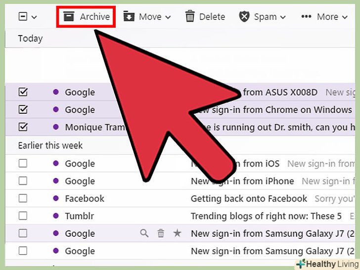 Якщо ви не хочете видаляти важливі листи, але хочете звільнити поштову скриньку, просто архівуйте їх. Листи, відправлені в архів, не потрібно сортувати і видаляти вручну, але їх можна переглядати в міру необхідності. Заархівувати листи можна на комп'ютері і мобільному пристрої; листи можуть перебувати в Gmail, Outlook або Yahoo.