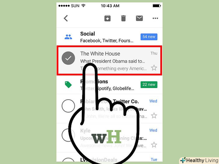 Виберіть листи для архівування. для цього торкніться кожного потрібного листа.- Щоб заархівувати лист, можна просто провести по ньому зліва направо.