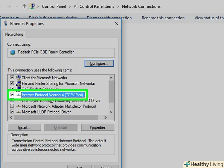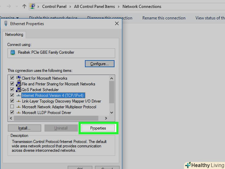 Натисніть " Протокол інтернету версії 4 (TCP/IPv4)». ця опція знаходиться посередині спливаючого вікна «підключення по бездротовій мережі — властивості». Опція буде виділена.- Якщо ви не бачите цю опцію, перейдіть на вкладку «Мережа» у верхній частині вікна.